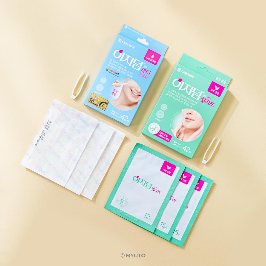 이지덤 뷰티와 이지덤 뷰티 릴리프는 여드름의 상태와 패치를 붙이는 목적에 따라 골라 쓸 수 있는 여드름 패치에요. 각각의 제품을 사용해야하는 상황이 다르니 잘 파악해서 적합한 제품을 붙여주면 빠른 치유에 도움이 되겠죠?
